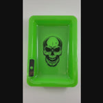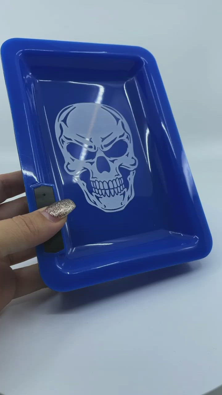 These trays are LIT! Makes rolling easier. Each features ultra bright led lights and come in a variety of different designs and colors. Powered by rechargeable battery. 4-5 hour battery life. 1 hour rapid charge. Easy to clean, fun to use! Great for tobacco and more!