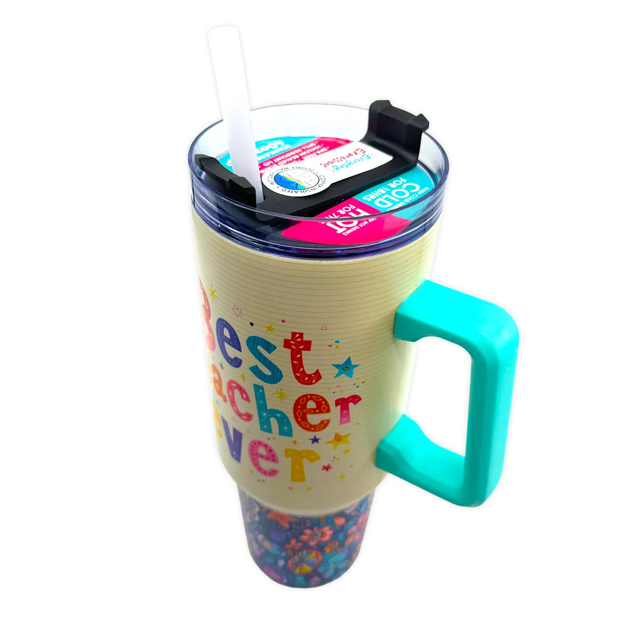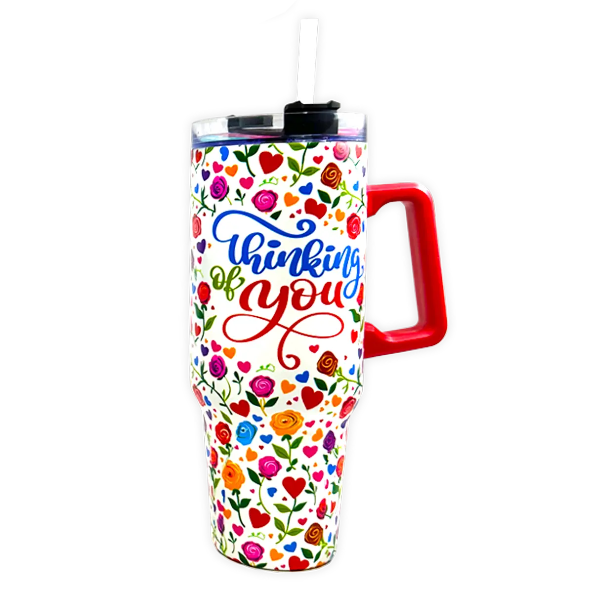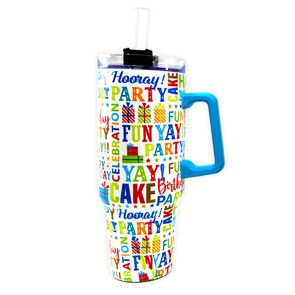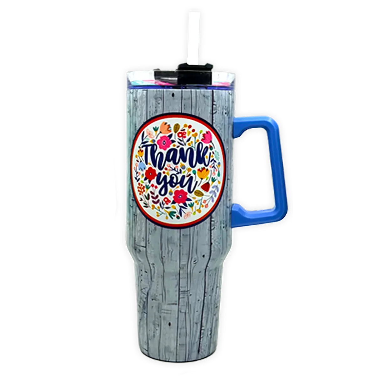 Elevate your beverage game with our 40oz Insulated Themed Cups! This copper-insulated, vacuum-sealed stainless-steel cup keeps drinks cold for 18 hours and hot for 7 hours. Includes a straw and spill-resistant lid. Hand wash only. BPA free. All items are pre-priced.