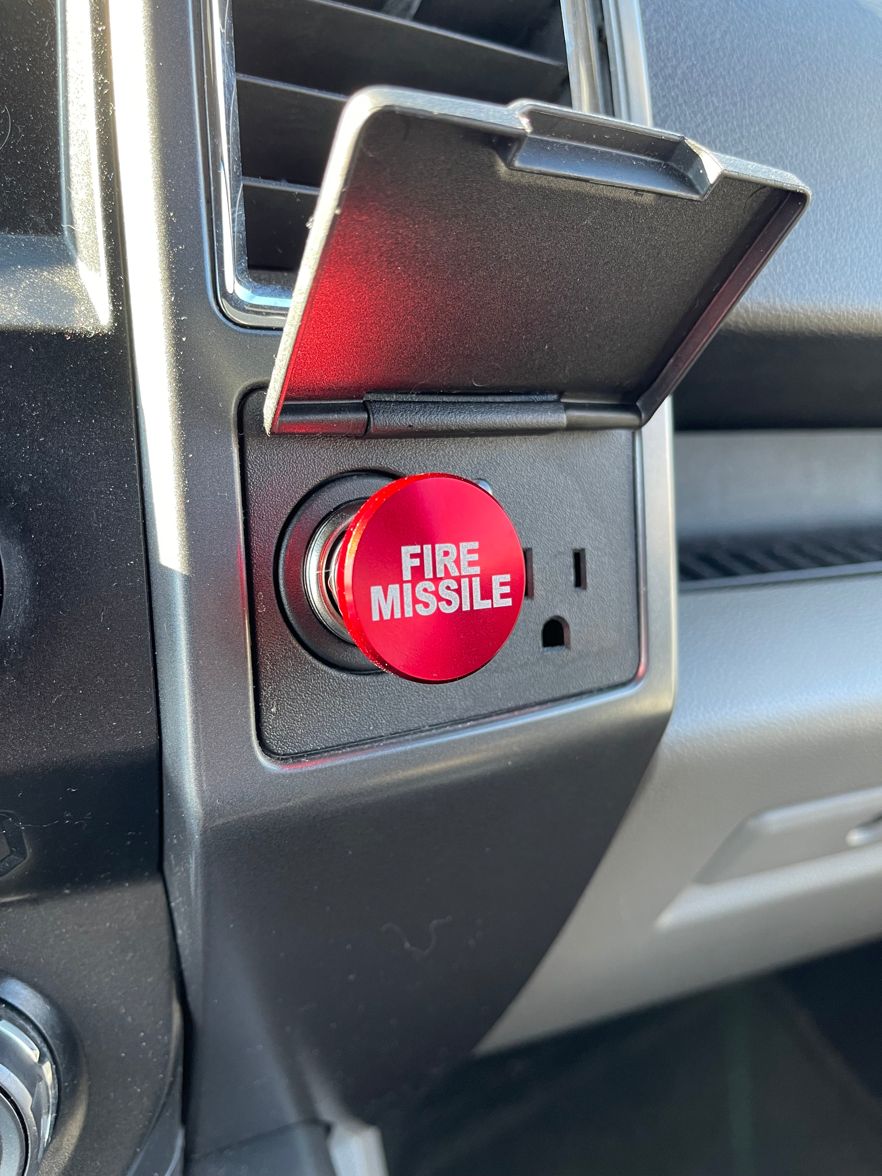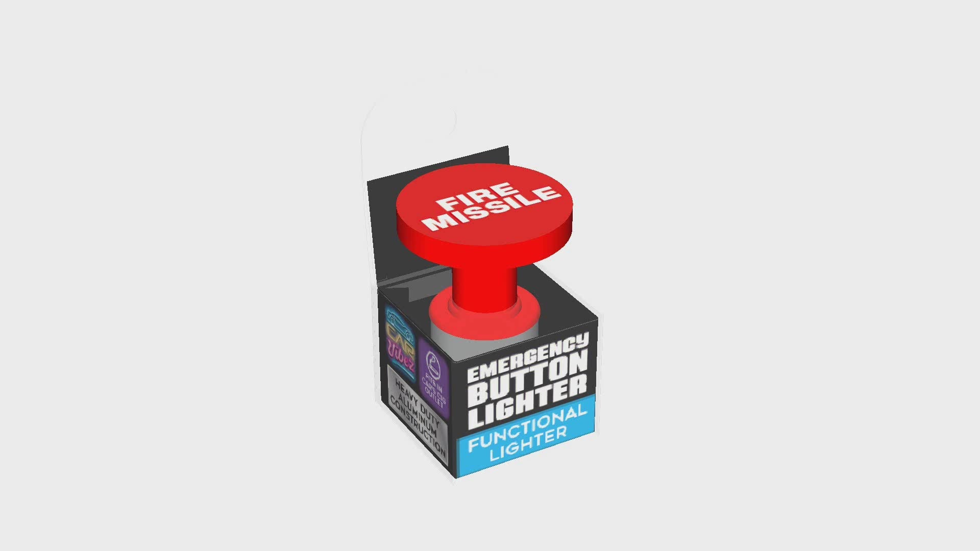 Emergency Button Lighter – the ultimate "OH SHOOT" button! Press your stress away and always keep a lighter handy! Heavy duty aluminum construction. Charge with most 12Volt outlet. Please note: this IS a functional lighter. Includes assorted designs: "Eject," "Fire Missile" and "Nitrous." Great to set the vibes! ***NO DISPLAY***