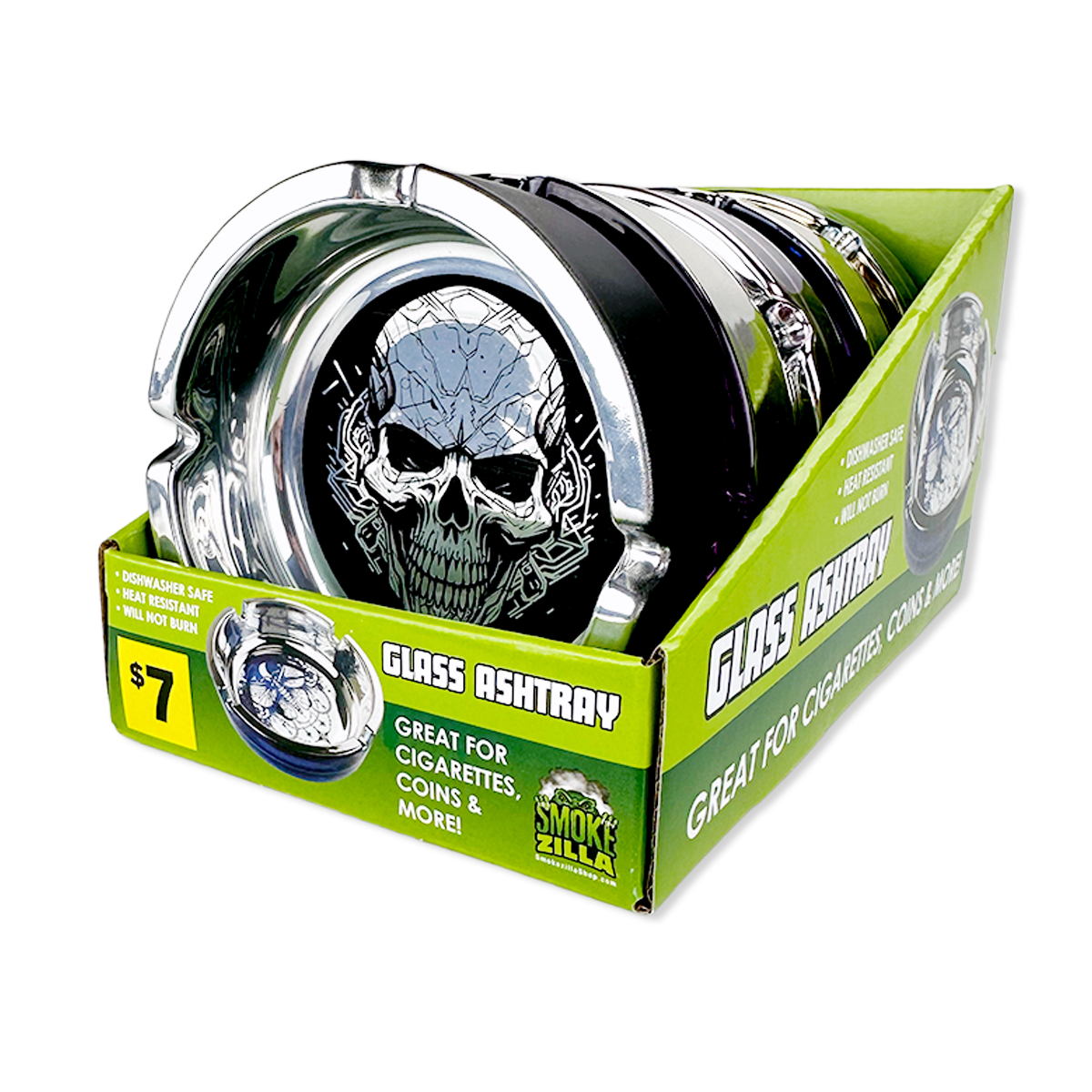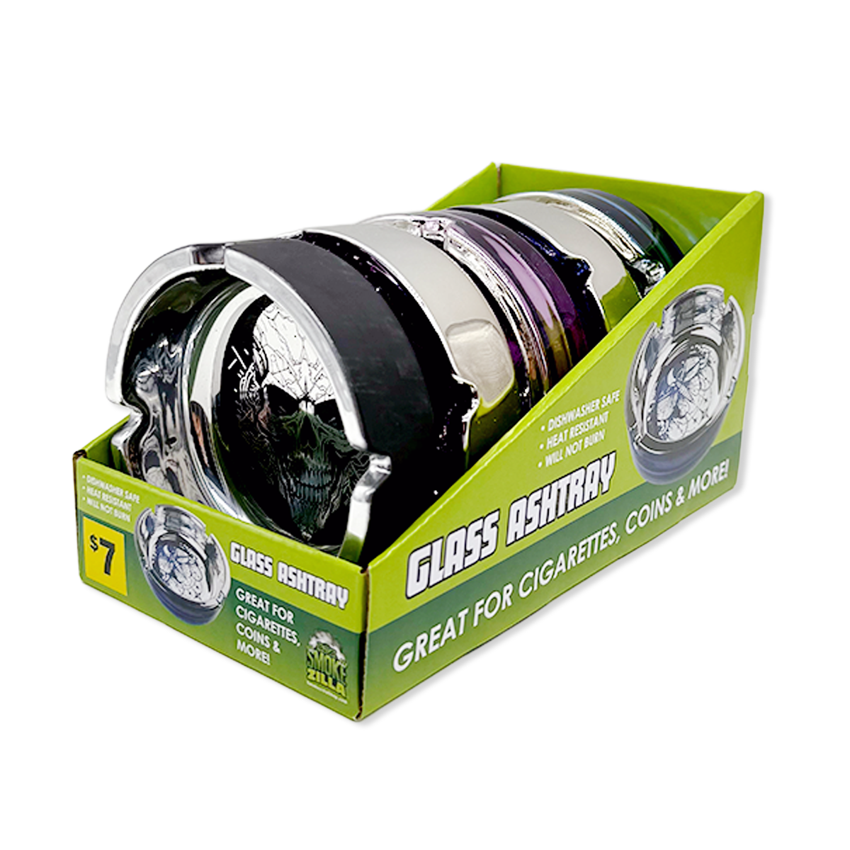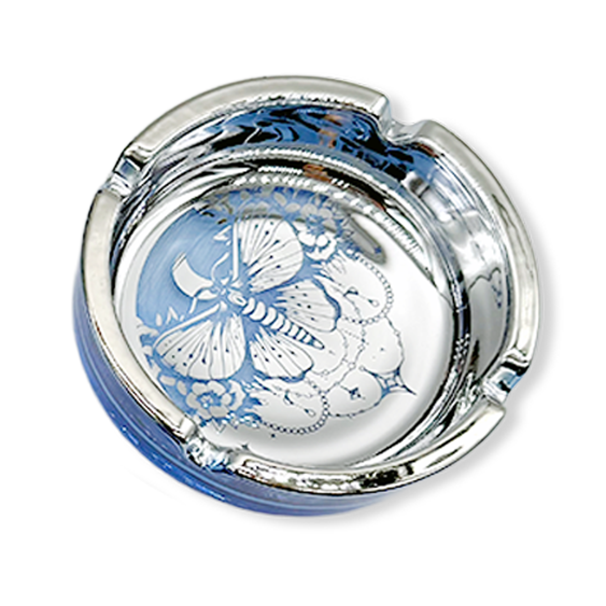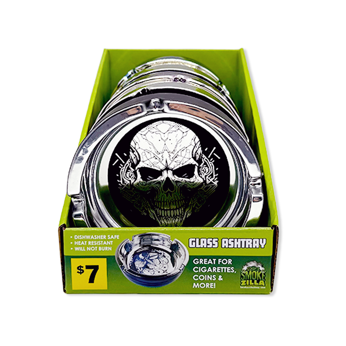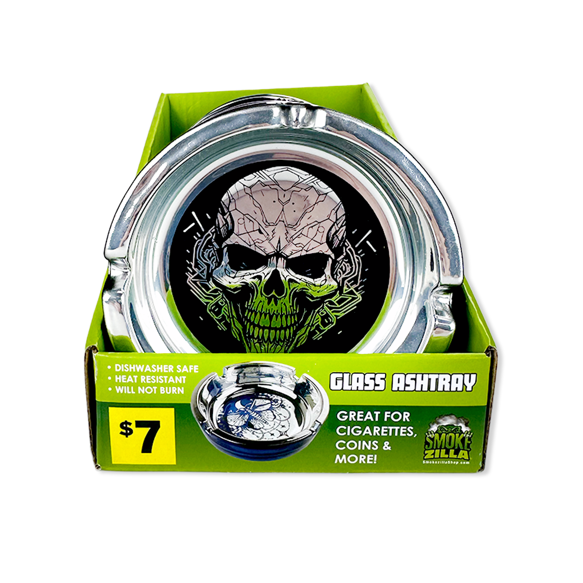 Elevate your smoking experience with our Glass Plated Ashtray! This heat resistant and dishwasher safe ashtray won't burn, making it perfect for all your smoking needs. Its cool designs add a touch of style while its functionality allows for use with cigarettes, coins, and more. Upgrade your ashtray game today!