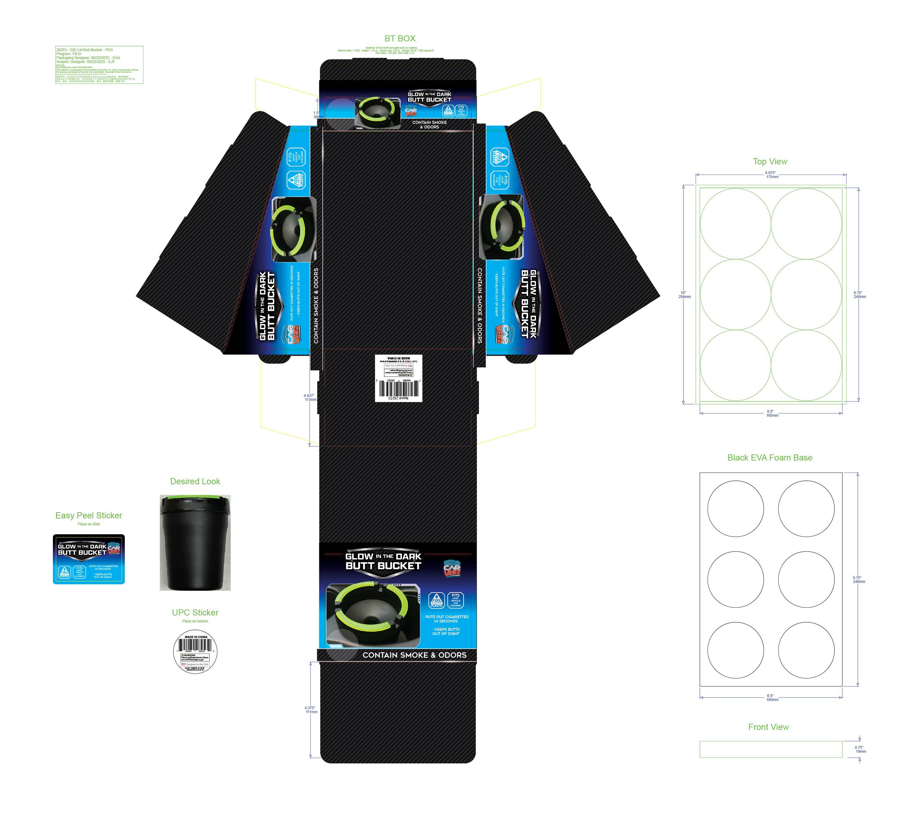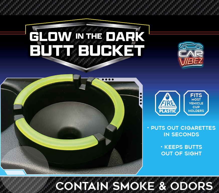 Glow In The Dark Butt Bucket Ashtray – fire-retardant design safely extinguishes cigarettes in seconds while the glow-in-the-dark feature ensures visibility in any lighting condition. This compact ashtray contains smoke and odor effectively, making it ideal for vehicles, patios, or indoor spaces. The universal fit accommodates most standard car cup holders, delivering convenience without taking up valuable space. Perfect for wholesale buyers seeking a practical, eye-catching novelty item with genuine utility.