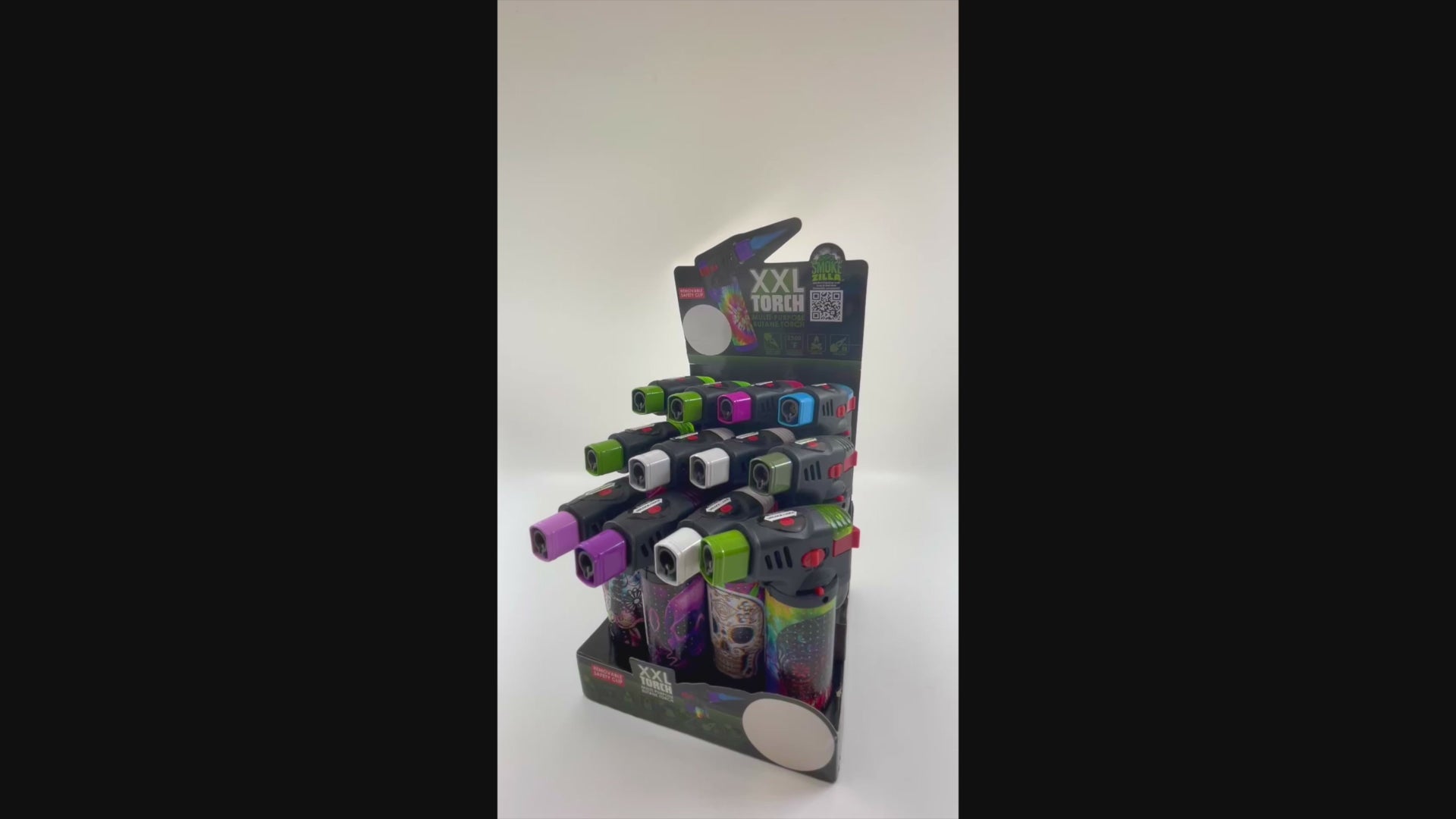 Refillable XXL style torch lighter with 360º printed designs. Has 2300° flame, strong enough for any task! Great for camping, bronzing metal, soldering wires, flaming food, and more! Comes with a safety lock and in assorted colors and designs.
