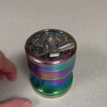 4 Piece RAINBOW Metal Grinder made from high quality aluminum with a ultra durable hard anodized finish with crank-action handle on top. Includes free scraper tool!