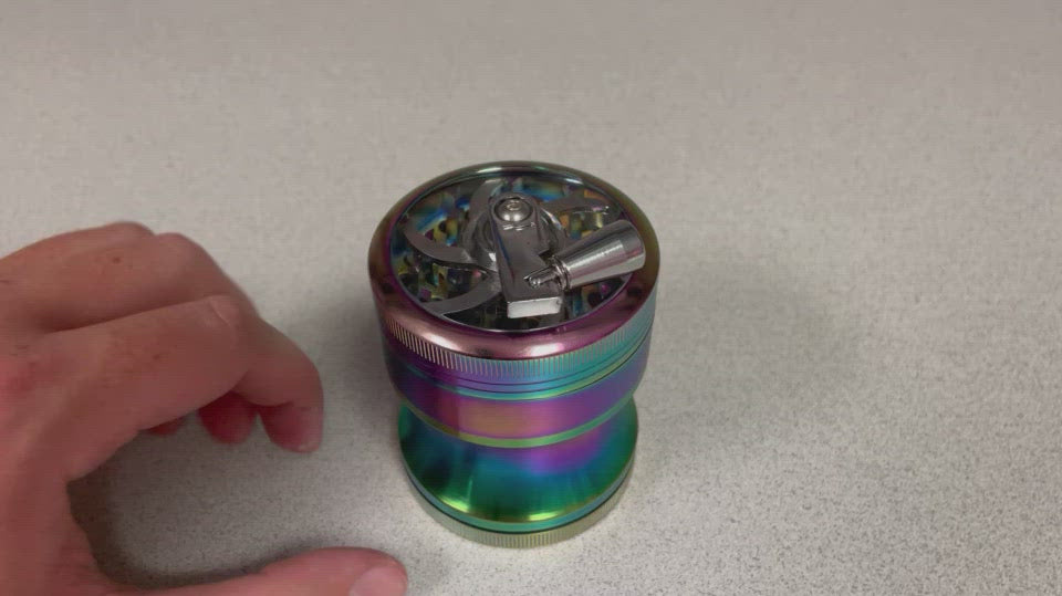 Metal 4 Piece Rainbow Grinder with Crank - 6 Pieces Per Retail Ready Display 22703