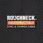 Roughneck 10FT Soft Cloth Touch 2.4 amp rapid charge cables feature durable aluminum connectors, and a flat rugged Kevlar reinforced woven exoskeleton same material used in bullet proof vests! USB Type-C to USB Type-C connection port. Black and orange design style.