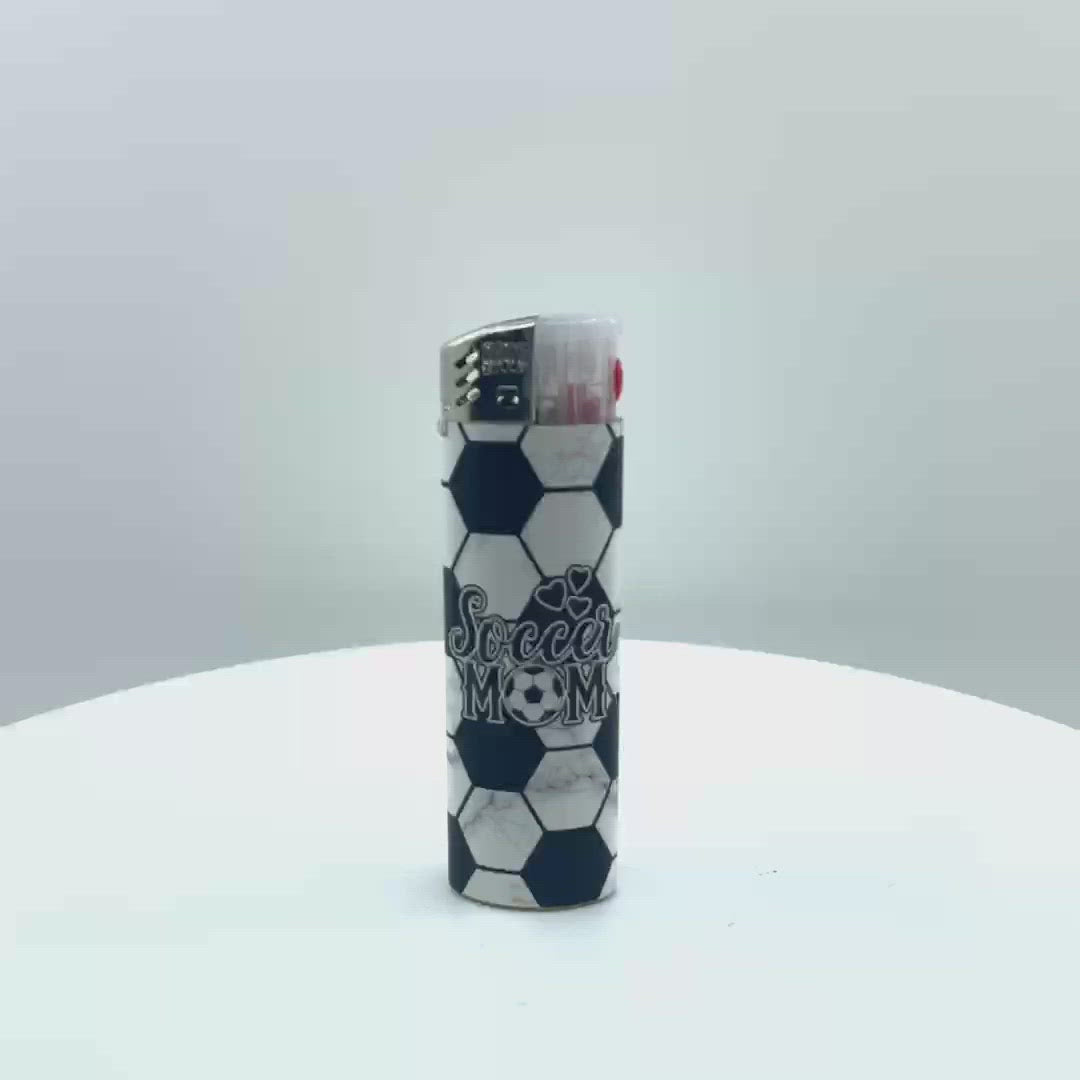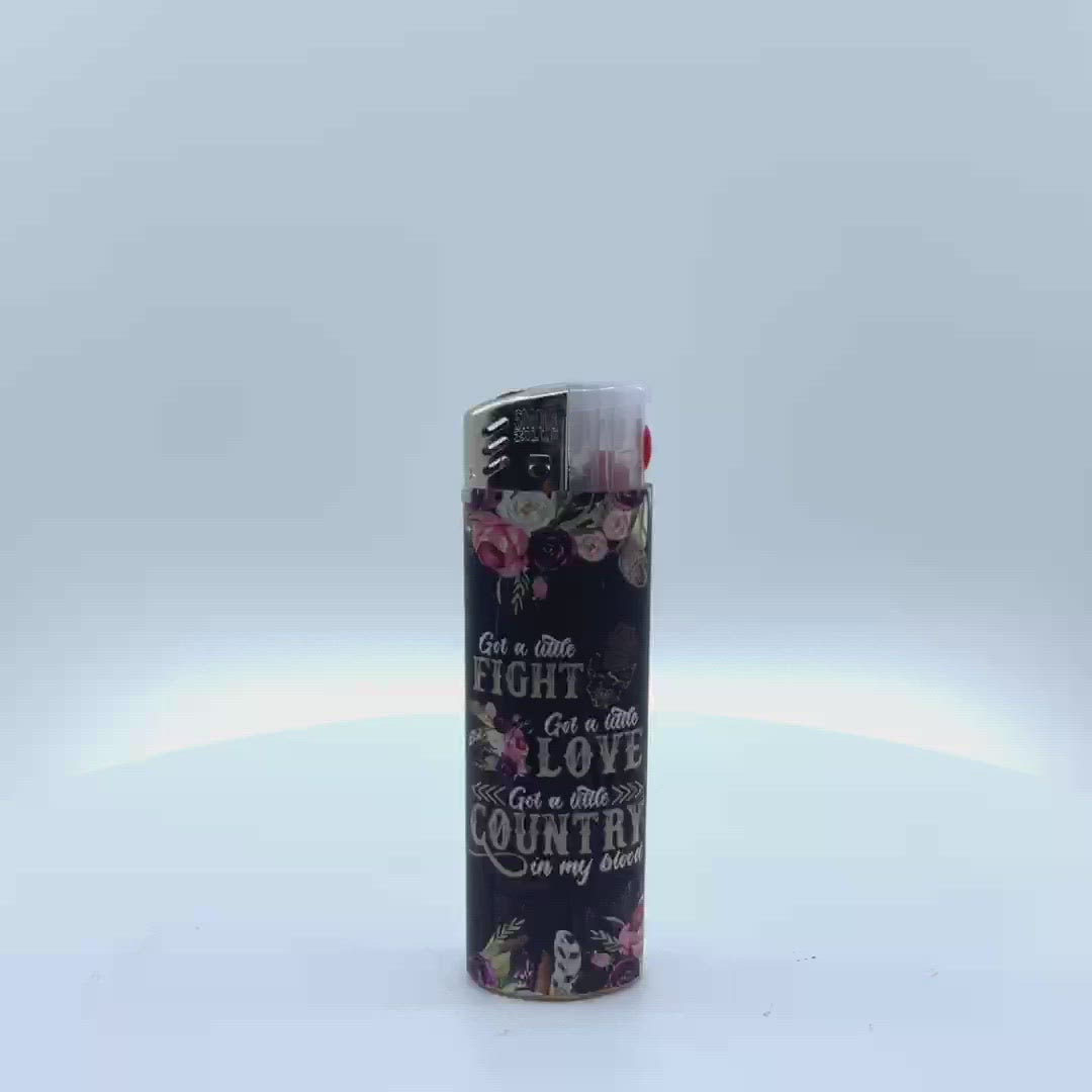 Refillable Light Up Curve Lighter with built-in light show. Comes in assorted designs and sayings.