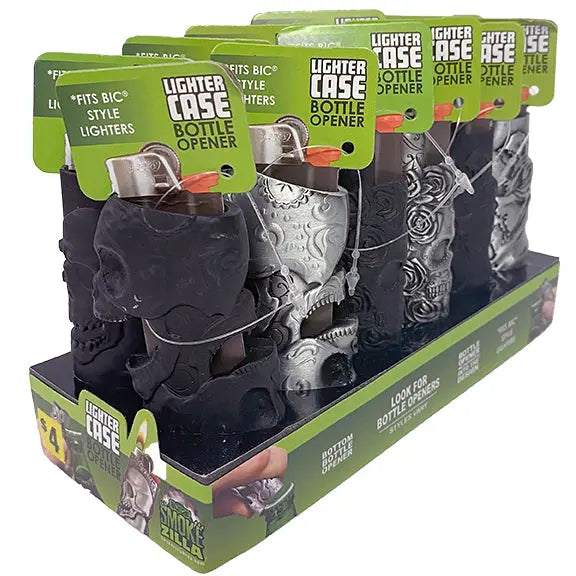 Mystic themed lighter cases comes in a variety of mystic themed styles including skulls, dragons, wizards, and more! Some styles offer a built in bottle opener. Variety of pewter and black styles included in each display.