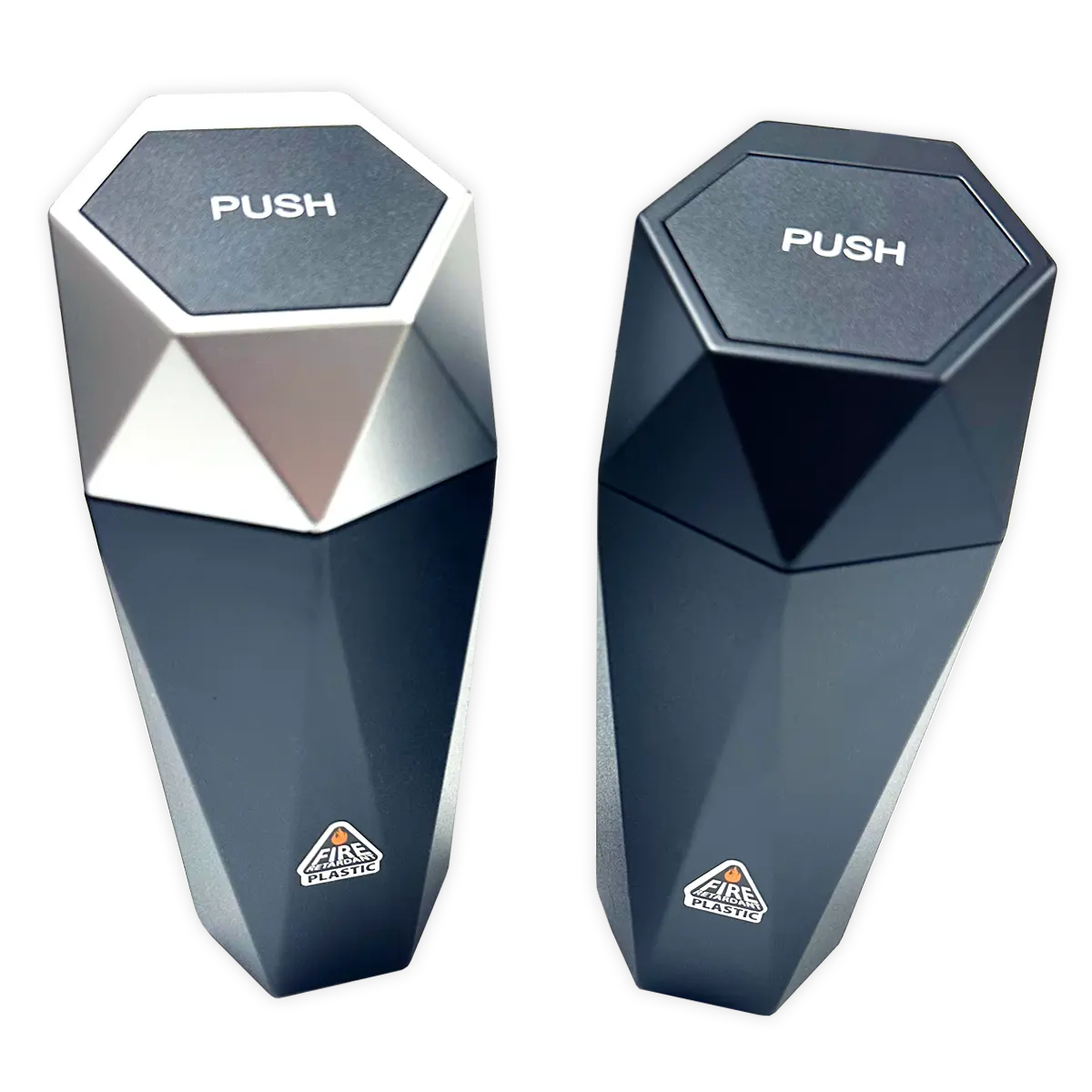 Keep your car clean and organized with our Mini Car Trash Can Accessory! It fits most cup holders and features a retractable door for easy disposal. Made from fire retardant material, it also doubles as a cigarette butt bucket. Each Mini Trash Can comes with 15 mini trash bags!
