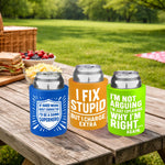Polar Gear Foam Can Insulators deliver reliable beverage temperature control in a versatile assortment designed for retail display. Features vibrant foam colors—neon orange, blue, black, neon green, green, and light blue. Each insulator showcases a unique saying printed in single-color design for maximum visual impact. Ideal for wholesale distribution, gift retailers, and novelty channels seeking high-margin, quick-turn merchandise with strong consumer appeal.