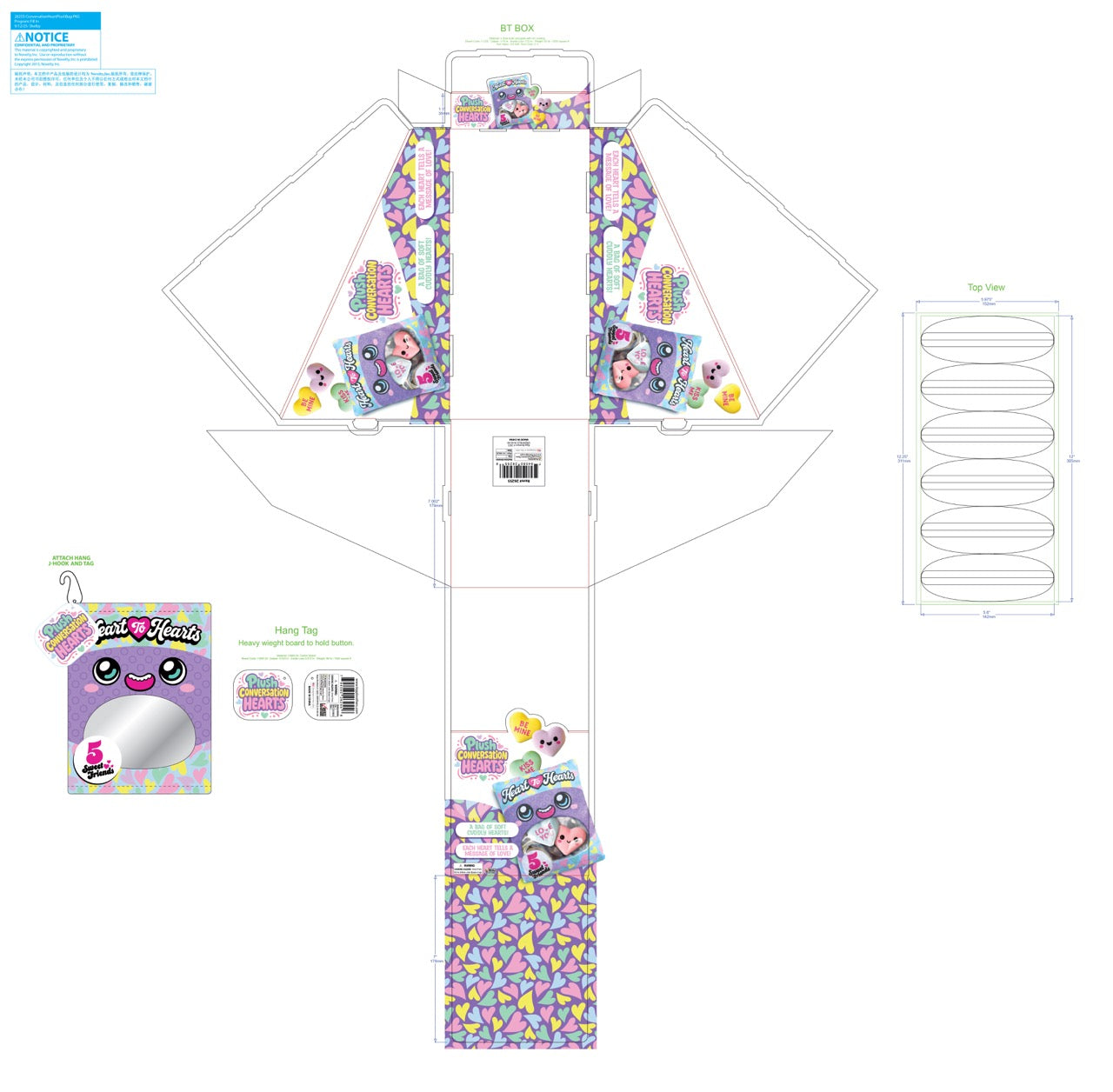 Bring a burst of fun and sweetness to any space with this Plush Bag of Conversation Hearts! Each display includes 6 delightfully soft, cuddly hearts perfect for gifting, decorating, or just collecting. They’re a playful twist on the classic candy conversation hearts, ready to spread smiles and cozy vibes wherever they go.