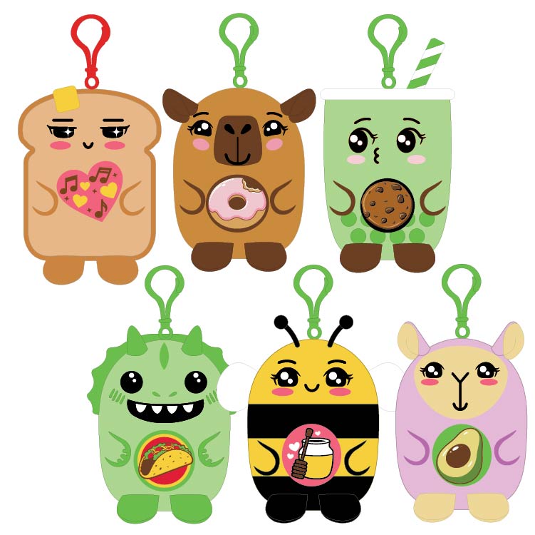 Hang on keys, backpacks, in cars, and everywhere in between! Little pals, big flavor! Squish 'em, collect them all, and pick your favorite! These irresistible plushie keychains are a must-have collectible!