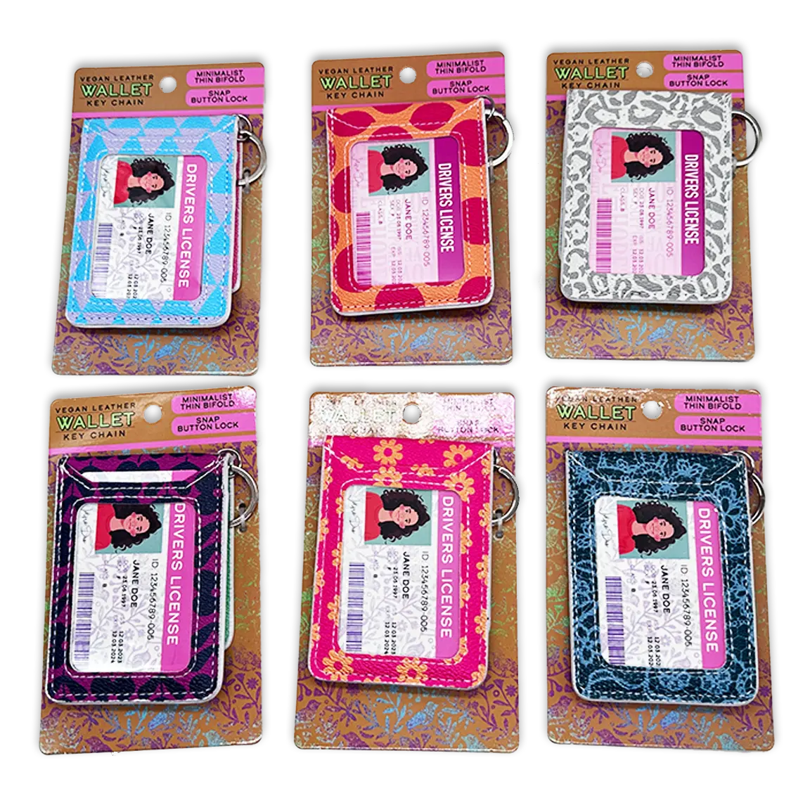 Upgrade your everyday style with our Vegan Leather Wallet Keychain! Made with high-quality vegan leather, this minimalist thin bifold wallet features a snap button lock for added security. It's the perfect size to hold your essentials and the keychain attachment makes it easy to keep with you on the go!