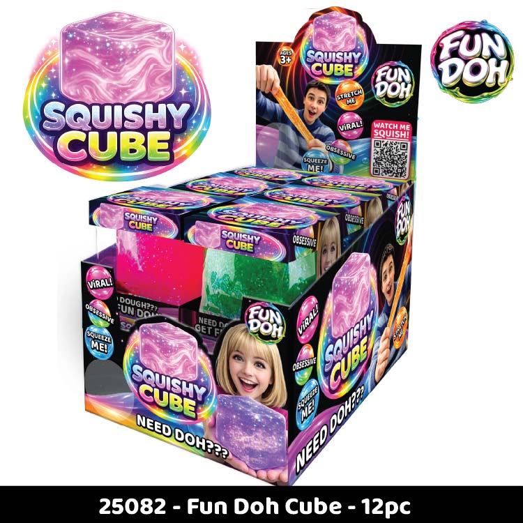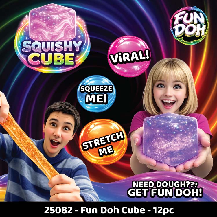 Get ready to squish, squeeze, and stretch your stress away with our Fun Doh Squishy Cubes! This display includes 12 colorful Cubes designed to provide endless hours of fidgeting fun. Say goodbye to stress and hello to relaxation with these delightful stress relief toys. Ages 3+.